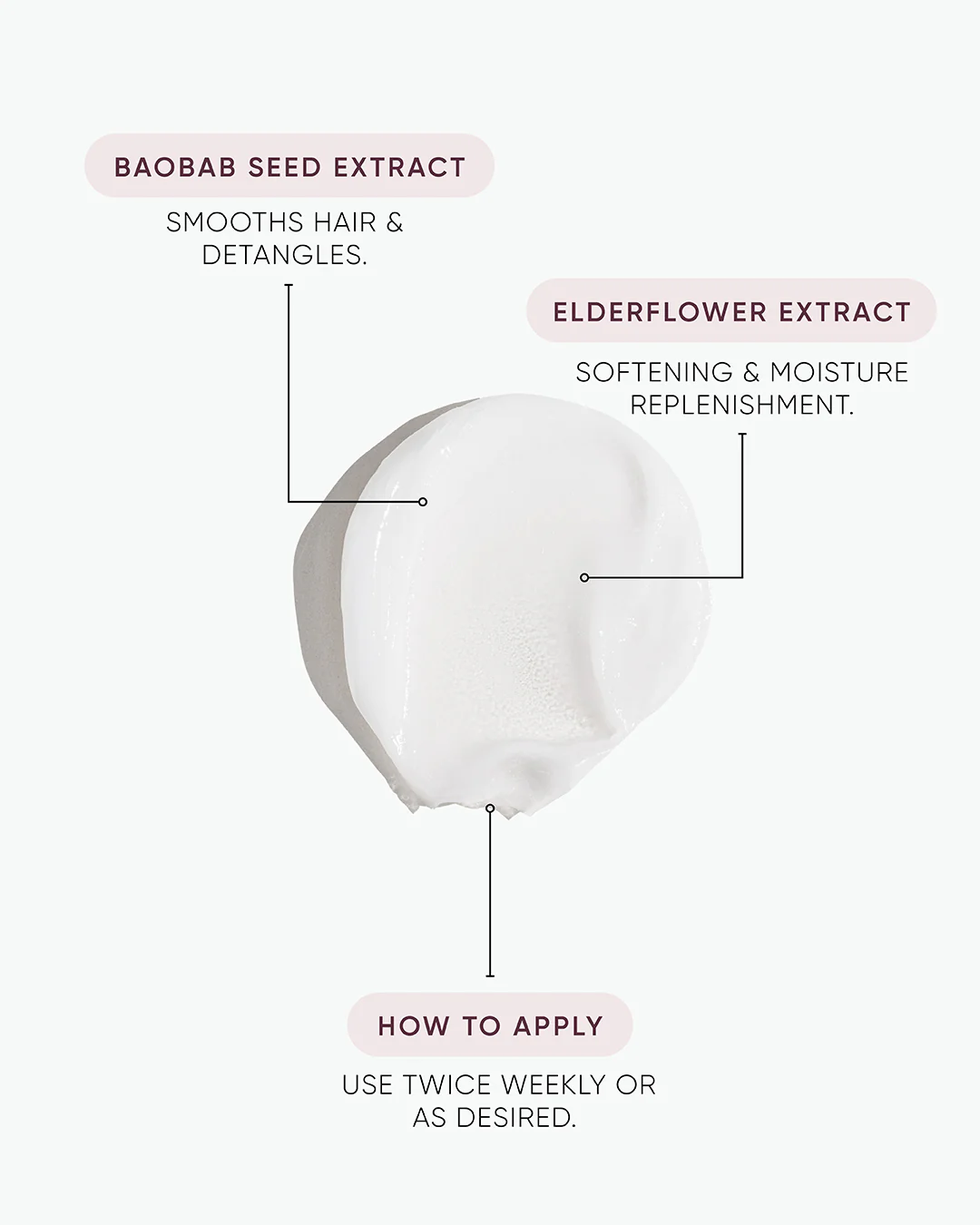 Saturates hair with essential humectants to replace lost moisture. Smoothes and shines the cuticle surface for optimum softness and manageability.